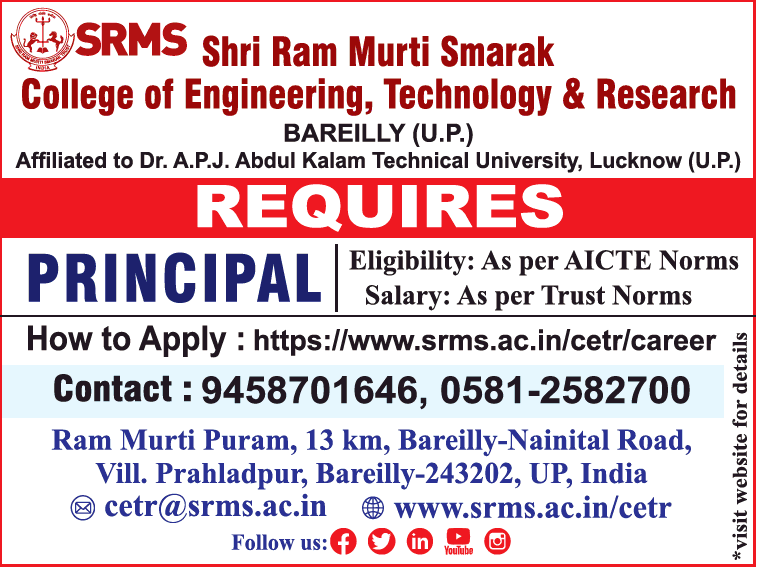 Shri Ram Murti Smarak College of Engineering, Technology & Research, Bareilly Wanted Principal