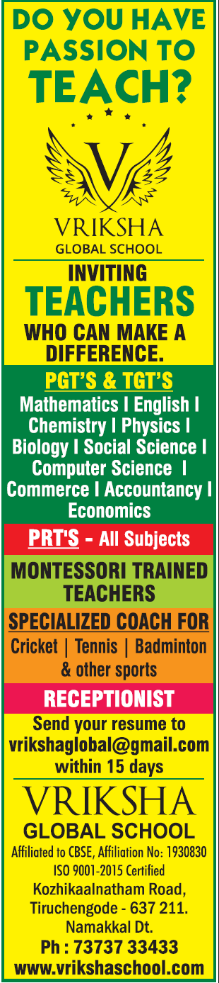 Raks Pallikkoodam School, Coimbatore Wanted Teachers and Non-Teaching Staff