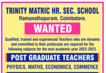 Trinity Matric Hr Sec School, Coimbatore Wanted PGT/TGT/PET