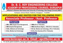 Dr.B.C. Roy Engineering College Academy of Professional Courses, Durgapur Wanted Associate Professor/Assistant Professor