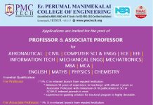 Faculty Recruitment job notification announced by Er.Perumal Manimekalai College of Engineering, Hosur, Tamilnadu for the post of Associate Professor, Professor...