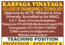 Teaching Jobs/Non-Teaching Jobs at Karpaga Vinayaga College of Engineering and Technology, Chengalpattu