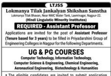 Lokmanya Tilak Jankalyan Shikshan Sanastha, Nagpur Wanted Assistant Professor
