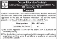 Faculty Recruitment job notification announced by DES's Institute of Management Development and Research, Pune, Maharashtra for the post of Assistant...