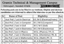 Gramin Technical and Management Campus, Nanded Wanted Assistant Professor/Lecturer/Non-Teaching Jobs