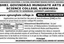 Teaching Faculty recruitment 2021 Job vacancy notification announced by Shri Govindrao Munghate Arts and Science College - Assistant Professor. Eligible candidates may Walk-In