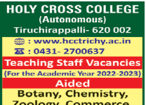 Holy Cross College (Autonomous), Tiruchirappalli wanted Teaching Staff