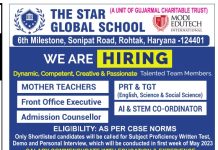 The Star Global School, Rohtak Wanted Teachers and Non-Teaching Faculty