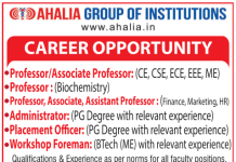 Ahalia Group of Institutions, Palakkad wanted Faculty for Teaching and Non-Teaching Positions for the 2023-2024 academic year for the post of Professor/ Associate Professor/...
