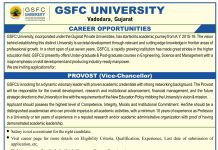 GSFC University, Vadodara Wanted PROVOST (Vice-Chancellor)