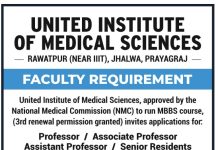United Institute of Medical Sciences, Prayagraj Wanted Teaching and Non-Teaching Faculty