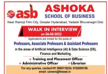 Ashoka School of Business, Hyderabad, Telangana Advertised Officially for the faculty recruitment 2023 – Professor Jobs, Associate Professor, Assistant Professor, Training and Placement Officer,...