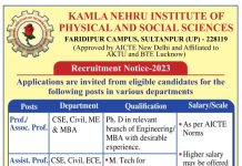 Faculty Recruitment 2023- Kamla Nehru Institute of Physical and Social Sciences, Sultanpur