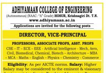 Faculty recruitment 2023 Job vacancy notification announced by Adhiyamaan College of Engineering, Hosur - Director, Vice-Principal, Professor/ Associate Professor, and Assistant Professor Jobs. Eligible...