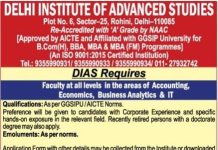 Delhi Institute of Advanced Studies, New Delhi Wanted Teaching Faculty