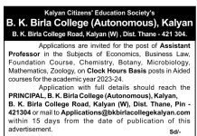 Savitribai College of Arts wanted Assistant Professor for various departments. Eligible candidates may Walk-In on 10th August 2023.