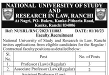 National University of Study and Research in Law, Ranchi wanted Professor/ Associate Professor/ Assistant...