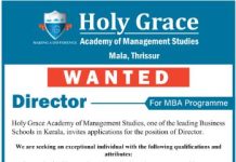 Holy Grace Academy of Management Studies, Mala, Thrissur Wanted Director