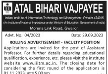 Atal Bihari Vajpayee Indian Institute of Information Technology and Management, Gwalior Wanted Assistant Professor