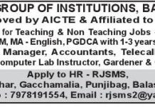 RJSMS Group of Institutions, Balasore Wanted Teaching and Non-Teaching Faculty