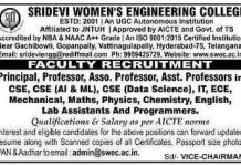 Professor/ Associate Professor and Assistant Professor Jobs at Sridevi Women’s Engineering College, Ranga Reddy