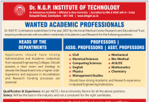 Dr. N.G.P Institute of Technology, Coimbatore Tamilnadu Advertised for the Post of HOD's, Professor Jobs, Associate Professors Jobs, Assistant Professor Jobs for Various Engineering...