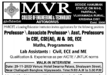 Faculty Recruitment 2023 at MVR College of Engineering and Technology, Krishna