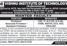 Vishnu Institute of Technology, Bhimavaram Wanted Teaching Faculty
