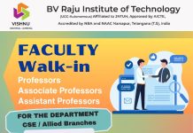 B V Raju Institute of Technology, Narsapur, Telangana wanted Professors / Associate Professors and Assistant Professors for CSE,CSE(Allied Branches)