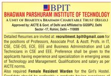Bhagwan Parshuram Institute of Technology wanted Professor, Associate Professor, Assistant Professor for the academic year 2024-2025 academic year. Eligible candidates can apply through Email