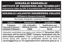 Gokaraju Rangaraju Institute of Engineering and Technology, Hyderabad Wanted Professor/Associate Professor/Assistant Professor