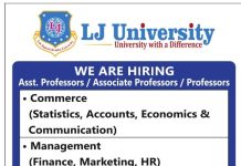 LJ University, Ahmedabad Wanted Professor/ Associate Professor/Assistant Professor