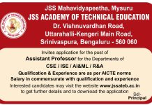 JSS Academy of Technical Education, Bengaluru Wanted Assistant Professor