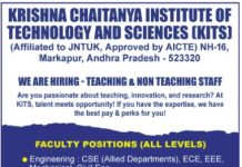 Faculty Recruitment 2025 at Krishna Chaitanya Institute of Technology and Sciences, Markapur
