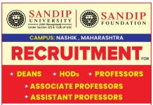 Sandip University, Nashik, Maharashtra, Wanted Teaching and Non-Teaching Faculty