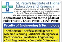 St. Peter’s Institute of Higher Education and Research, Chennai Wanted Professors, Associate Professors and...