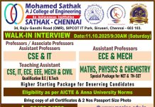 Mohamed Sathak A.J. College of Engineering (Autonomous), Chennai | Walk-in Interview on 11-10-2025