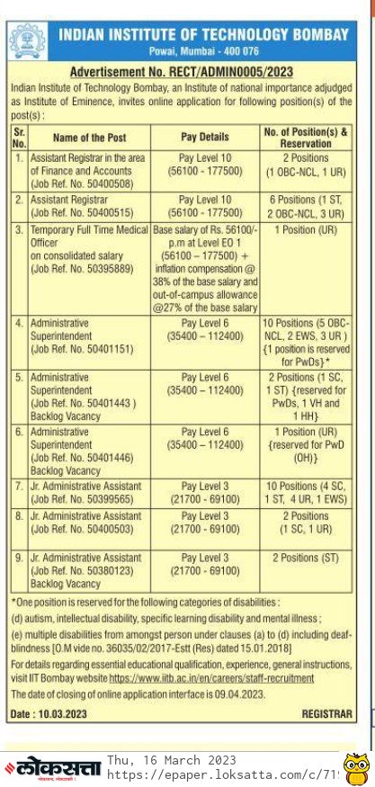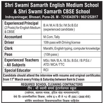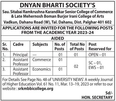 Faculty recruitment 2023 jobs notification announced by various Colleges and Schools in Maharashtra (16/03/2023).