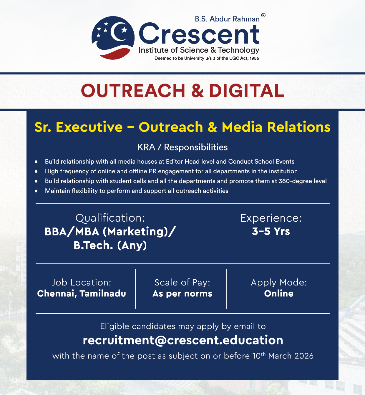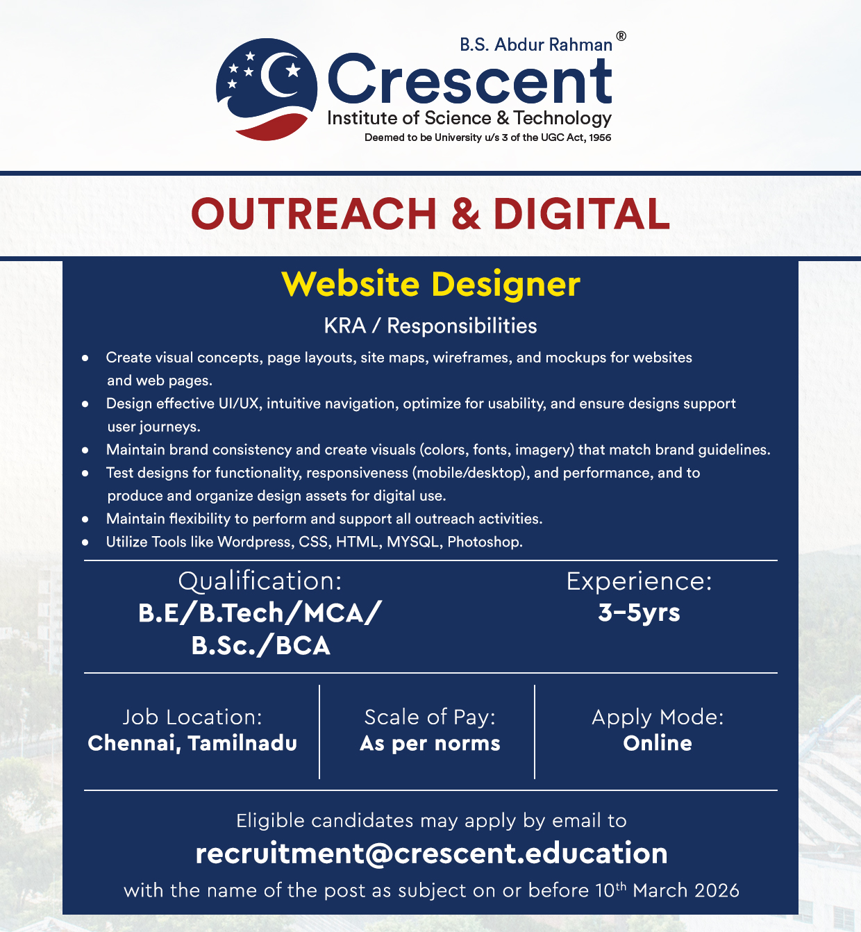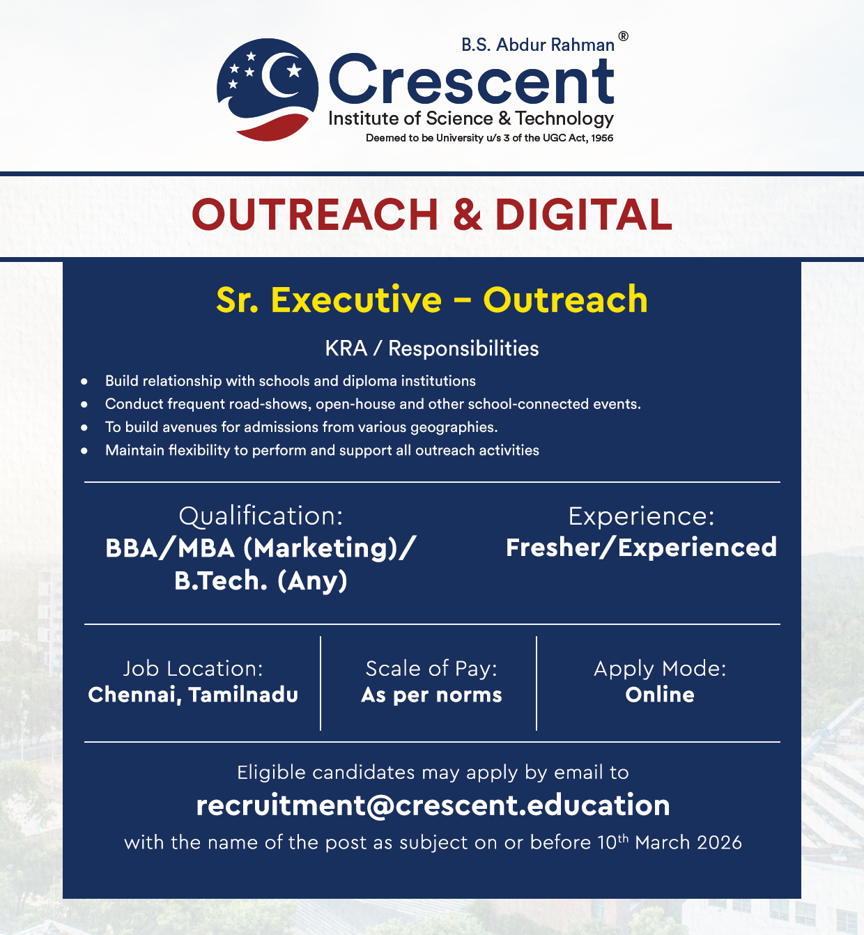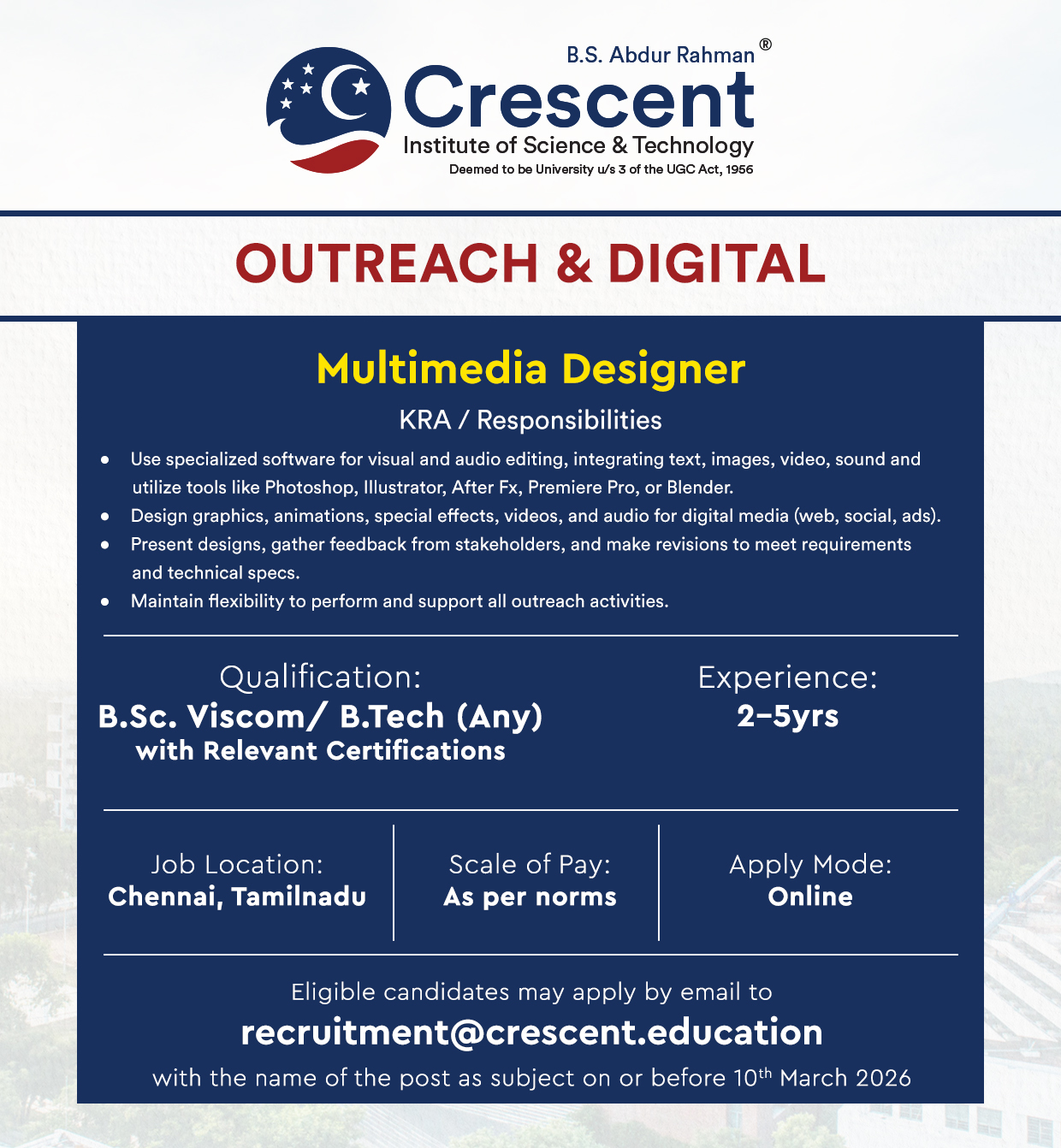 The information provided on this website is for general informational purposes only. Facultyplus.com is a platform that connects job seekers with potential employers. We do not guarantee the accuracy, completeness, validity, or timeliness of any job listings, employer information, or other content posted on our site. Visitors of this facultyplus.com are requested to very the infomation directly in the instution website/official link before apply to this job