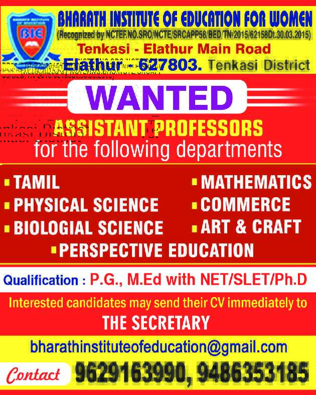 About College: Bharath Institute of Education for Women, Elathur evinces a visionary revolution, towards the MISSION, for the Emancipation of Women. The institute is committed to nurturing & creating women who are equipped to be world citizens. It enables women to reconcile excellence with humanity, to celebrate diversity & redefine notions of success. It also strives to imbibe the teaching process with a unique blend of intellectual rigour and aesthetic & ethical engagement. It aims for a holistic vision among the teaching community, to embrace the future women with unwavering confidence in the ability to shape it & sparkle its potentialities.