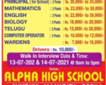 Alpha High School, Andhra Pradesh wanted Principal and Teachers for 2021-2022 academic calendar year. Eligible candidates may Walk-In on 13th and 14th July 2021...