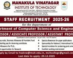 Faculty Openings 2025 at Manakula Vinayagar Institute of Technology, Puducherry