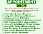 Leadership career opportunities are now open at Excel Group Institutions – prestigious Dean positions across academic, administrative, innovation, student affairs, and institutional development domains....