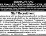 Faculty Recruitment job notification announced by Seshadrirao Gudlavalleru Engineering College, Krishna, Andhra Pradesh for the post of Professor, Associate Professor,...