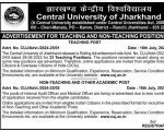 Central University of Jharkhand, Ranchi Wanted Professor/ Associate Professor/ Assistant Professor