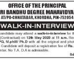 Bauri Bandhu Degree Mahavidyalaya, Khordha Wanted Lecturer