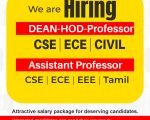 Sree Sakthi Engineering College, Karamadai, Coimbatore Wanted Dean/HOD/Faculty (Walk-in)