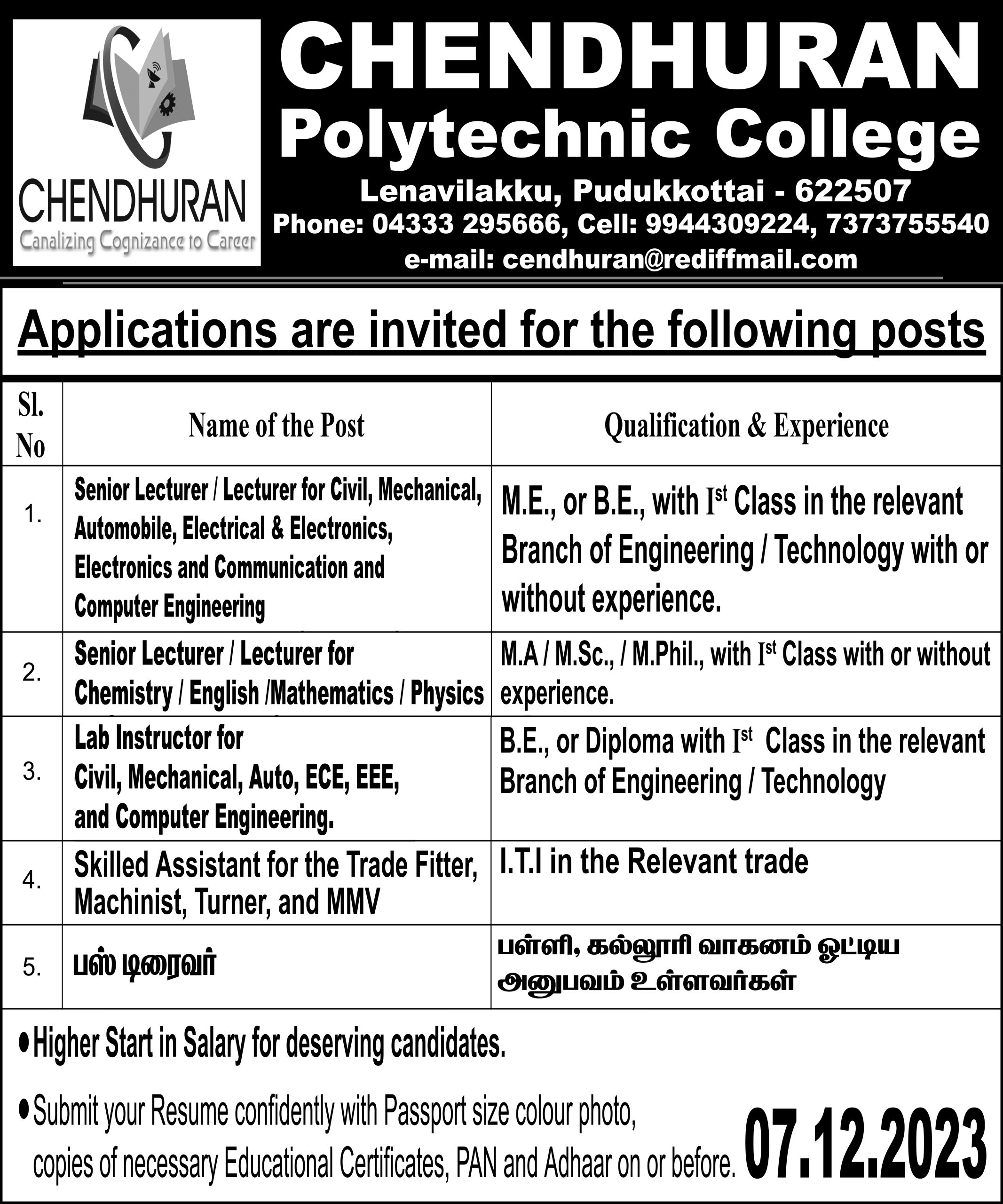 Chendhuran Polytechnic College Ad
