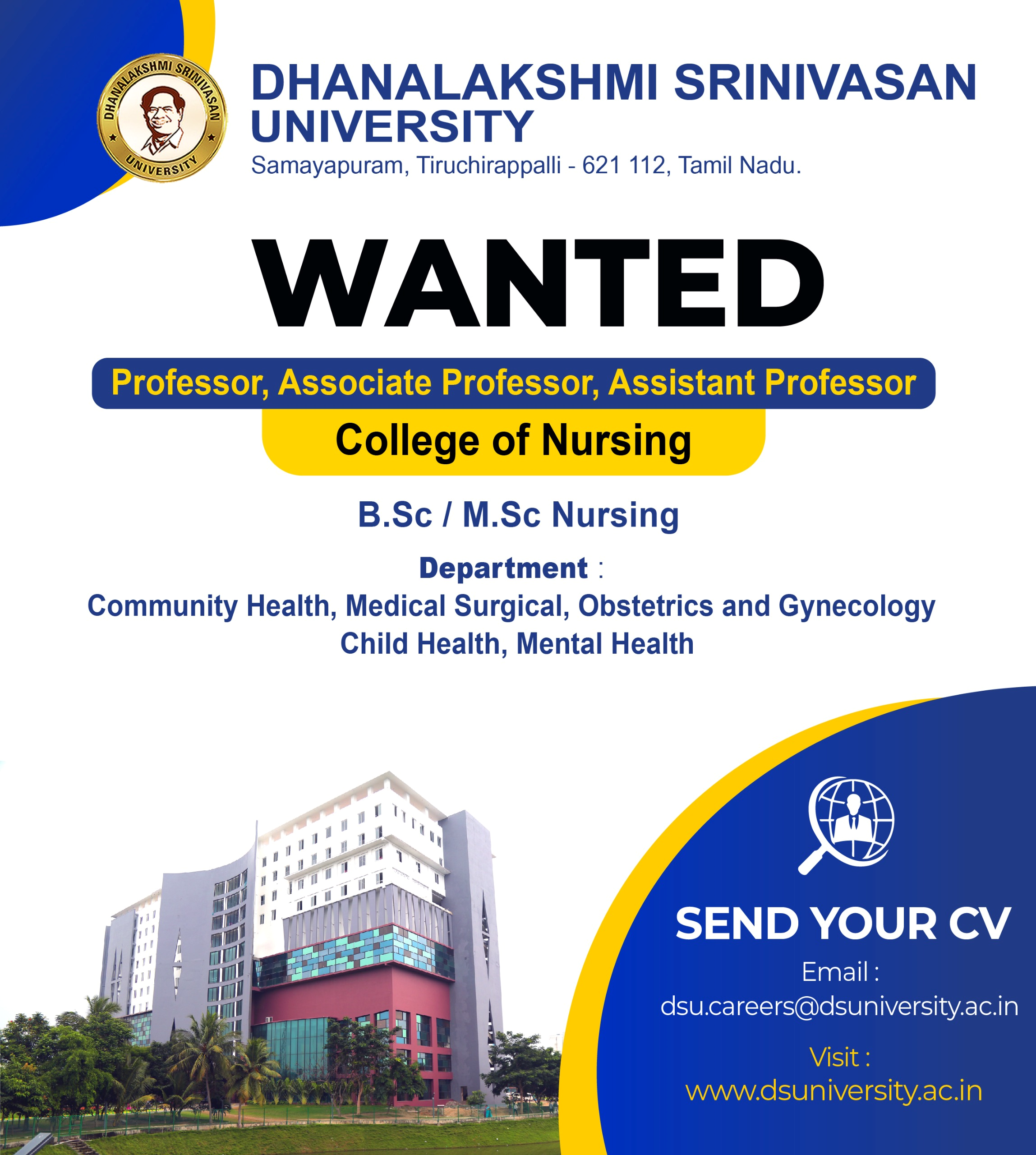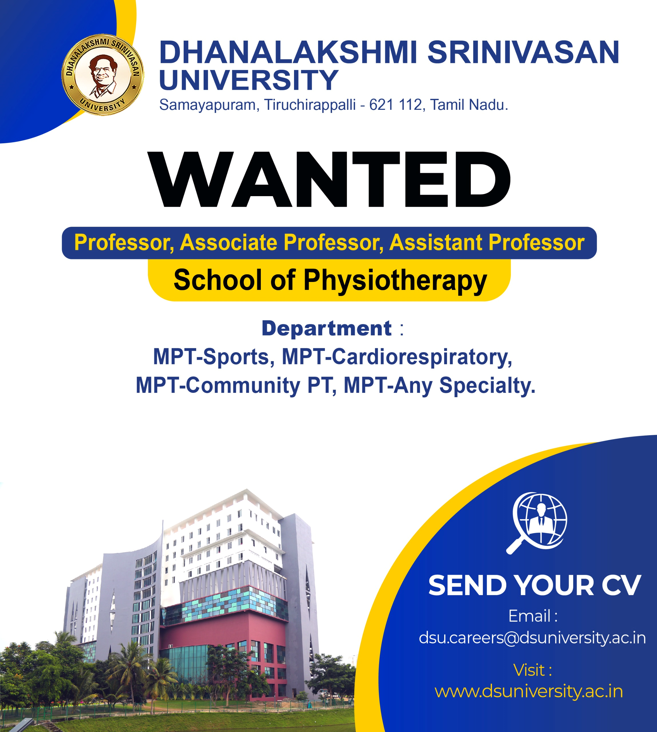 The Dhanalakshmi Srinivasan University (DSU), established under the Tamil Nadu Private Universities Act, 2019, is located in Tiruchirappalli, Tamil Nadu, India. DSU is known for its multidisciplinary nature, offering a wide range of academic programs in medicine, paramedical, engineering, and agricultural sciences. Our motto, “education for the real world,” reflects our dedication to nurturing future generations. The university features a green campus with state-of-the-art infrastructure and top-class faculty, catering to both national and international students.