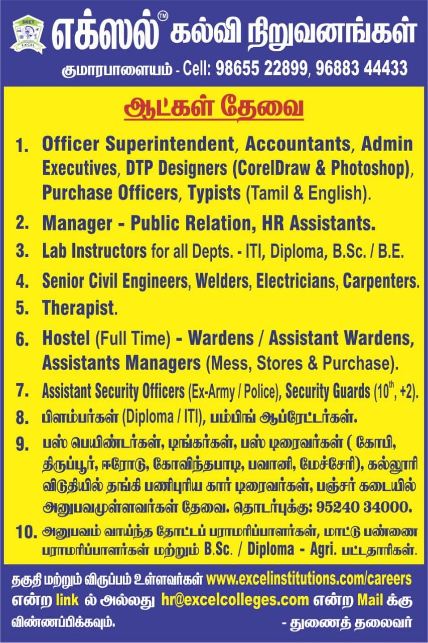 Excel Group of Institution, Namakkal, Tamilnadu Advertised official for the Staff recruitment 2023. For More Details see below.